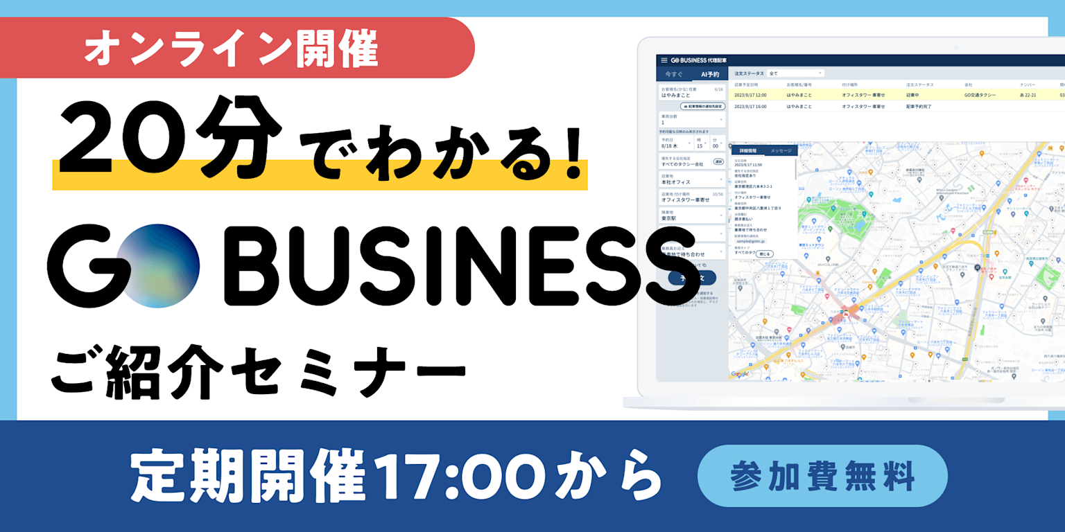 10,000社以上に導入いただいている、業務でのタクシー利用、精算をカンタンに管理できる『GO BUSINESS』についてご興味をお持ちの方に、その概要や特長をサクッと20分でご紹介します。