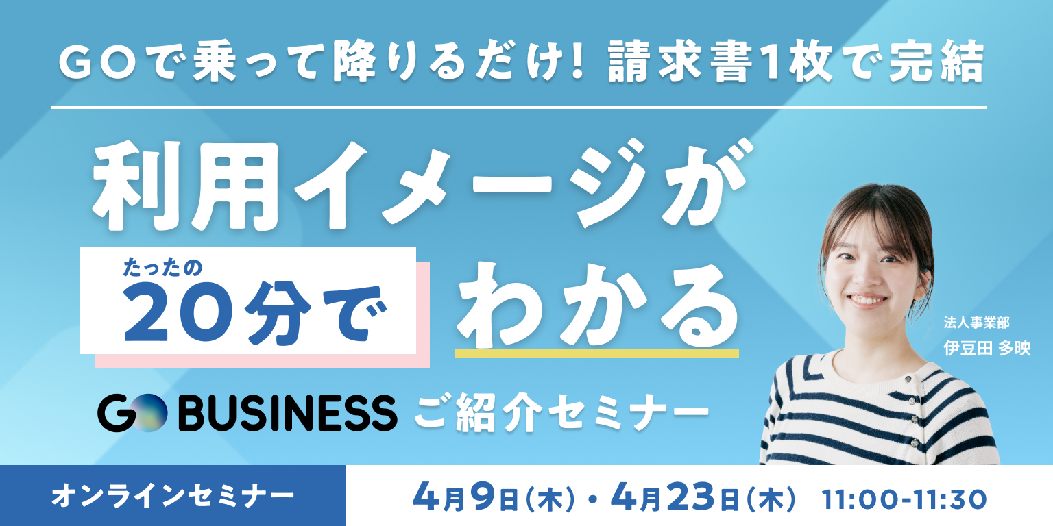 GOで乗って降りるだけ!請求書1枚で完結 20分で利用イメージがわかるGO BUSINESSご紹介セミナー